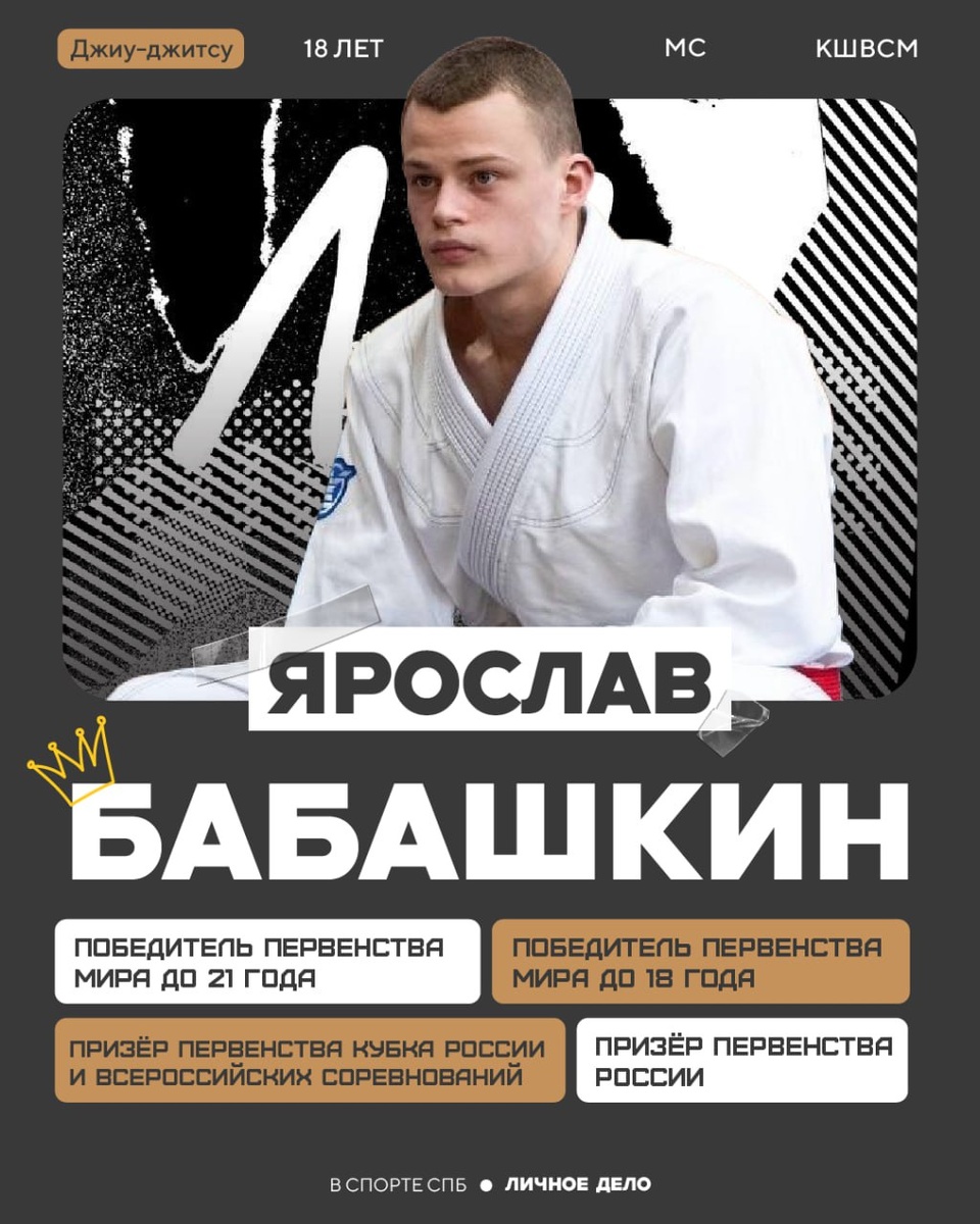 #ЛичноеДелоВСпорте 📓 🔝Двукратный победитель первенства мира по джиу-джитсу из КШВСМ – гость нашей постоянной рубрики. 📖 Открываем личное дело Ярослава Бабашкина! 🙌Будь ВСпорте!