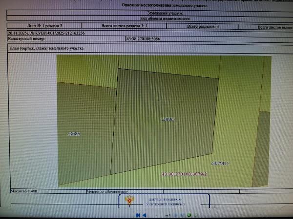 Название: Земельный участок с кадастровым номером 43:38:270108:3086 площадь 1075 по адресу Российская Федерация, Кировская область, м.р-н