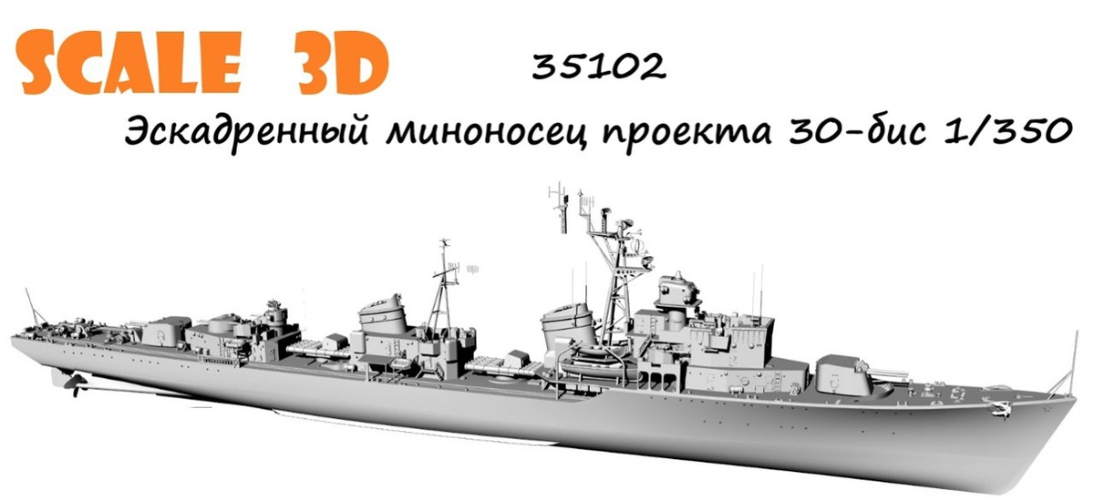 Scale_3D из Новосибирска выпустила на 3D-принтере модель эскадренного миноносца проекта 30-бис в масштабе 1/350: Эскадренный миноносец проекта 30-бис (каталожный номер 35102)
