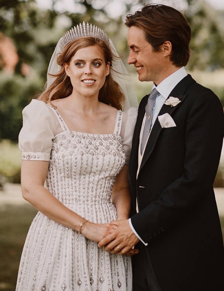 В сентябре 2020 года мир узнал о тайной свадьбе принцессы Беатрис и итальянского графа Эдоардо Мапелли Моцци. ______________________________________ Больше интересного в моем телеграм канале Гламурная bestия https://t.me/glamorousbestia И по ссылке в шапке профиля 🫶 ______________________________________ Событие оказалось не только скромным по масштабу, но и по-настоящему трогательным: для церемонии Беатрис выбрала винтажное платье своей бабушки, Елизаветы II. На первый взгляд — жест уважения к традициям, но эксперты считают, что за этим стоит гораздо больше нюансов. Платье, созданное Норманом Хартнеллом более 50 лет назад, было настоящим шедевром: сатин дюшес, органза, тафта Peau De Soie, россыпь кристаллов и идеальный крой. Для Беатрис его пришлось адаптировать под современные требования: стилисты и портные Ее Величества, Анджела Келли и Стюарт Парвин, изменили силуэт, подкорректировали подол и добавили рукава. Завершением образа стала тиара Марии Текской — та самая, что укра
