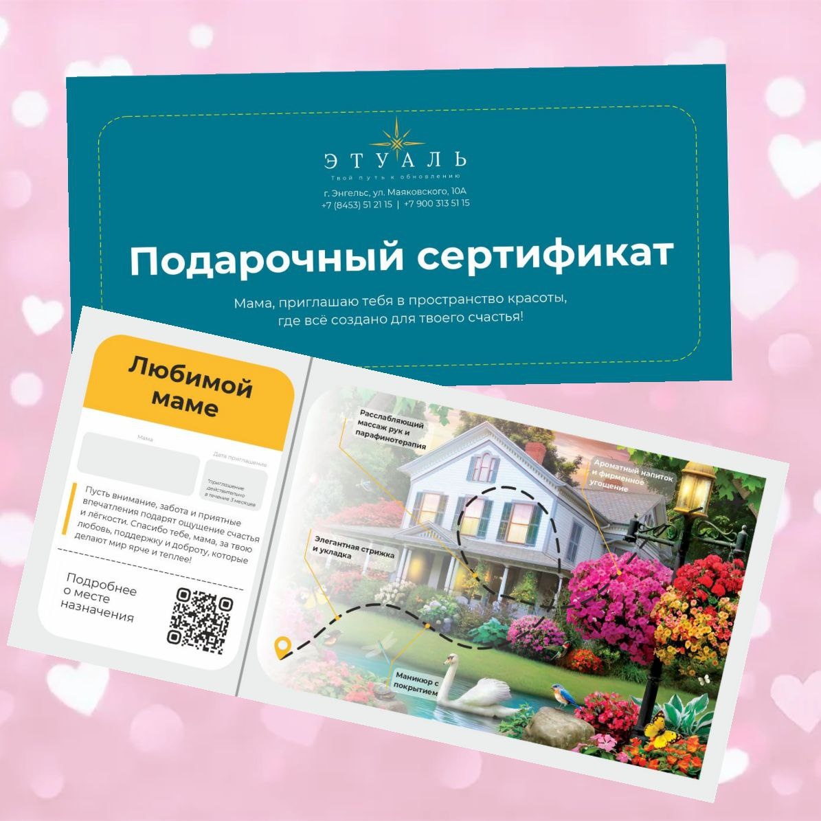 А в праздничный день так важно подарить возможность остановиться, отдохнуть, почувствовать себя красивой и любимой. Сертификат «Любимой маме