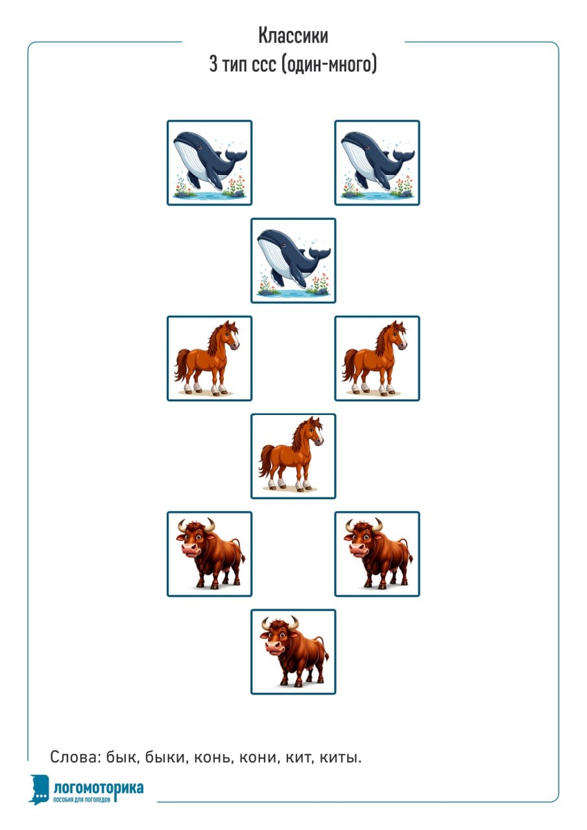 Классики для отработки слоговой структуры слова и простой грамматики (ед. и мн.число).