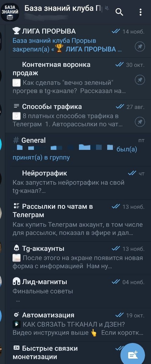 😦 Первые эмоции новых участников клуба — шок и паника Та самая, когда ты получаешь доступ и думаешь: «Подождите… это всё за такую цену?», «Сколько же здесь информации?», «С чего начать? Столько инструментов». И мне это нравится. Потому что это правильная реакция. Это то состояние, когда человек впервые чертит у себя в голове ясную картину продвижения. Когда он впервые видит: вот фундамент для моего канала, вот быстрые продажи, вот трафик, вот масштабирование — и всё это разложено по полочкам. На скринах показываю, как выглядит База знаний изнутри Когда ты оплачиваешь доступ, то сразу попадаешь в закрытый канал, чат для общения и базу знаний. Не в хаос полезных заметок, а в нормальную структуру, где: — разобраны все базовые темы, без которых продвижение в онлайне разваливается; — собраны короткие, понятные модули: только то, что нужно чтобы зарабатывать; — есть быстрые способы продаж, которые дают деньги ещё до того, как ты «настроишь идеальный канал»; — есть темы по трафику, к