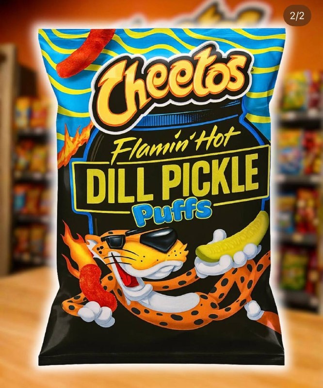 Cheetos анонсировали новый вкус — «Flamin' Hot Dill Puffs», который объединяет в себе солёные огурцы и рассол