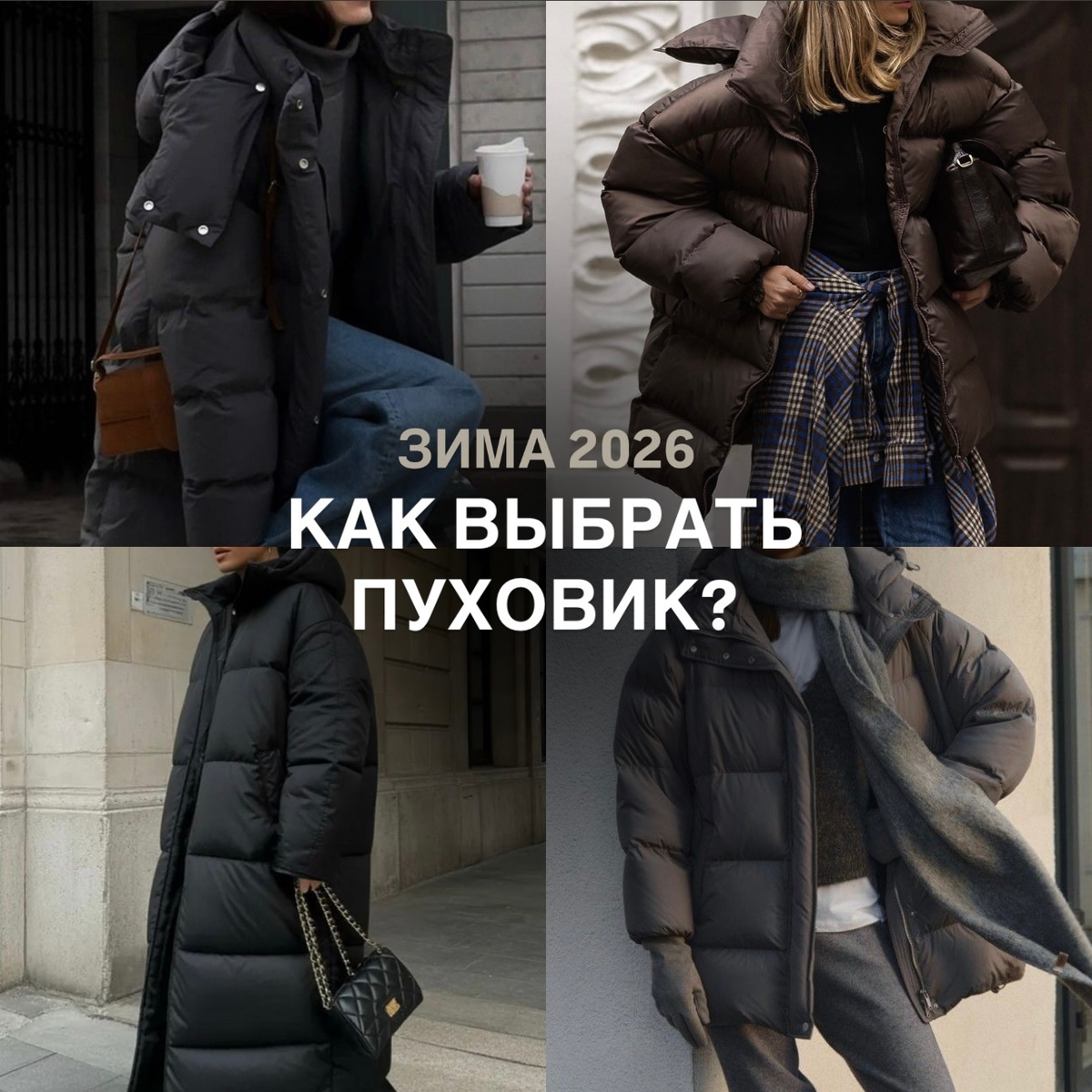 Нейтральные оттенки — графит, мокрый асфальт, кофе, сливочный, тёмный лес — легче комбинируются и всегда выглядят спокойно и стильно. Даже базовый пуховик в правильном цвете сразу смотрится дороже. 4. Капюшон или воротник, который держит форму