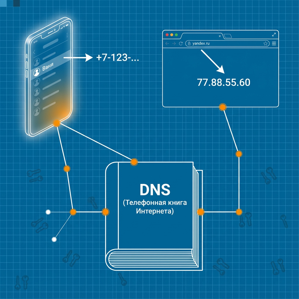 Каждый день мы десятки раз вводим названия сайтов в адресную строку: yandex.ru, youtube.com, vk.com. И для нас это настолько привычно, что мы даже не задумываемся — а как же браузер понимает, куда именно нужно обратиться? Ведь компьютеры не понимают слов, они оперируют числами.
