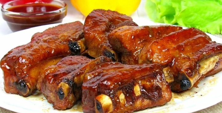 Свиные ребрышки, тушеные в соусе (по-домашнему, в кастрюле или казане)