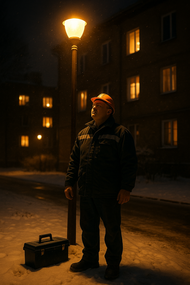 Он не спасал мир. Он просто включал лампы. Чаще всего никто не знал его имени. Люди выходили утром во двор, видели привычный свет и не думали, что ночью кто то стоял под этим столбом, мерз, ковырялся в проводах, чтобы им не пришлось идти домой на ощупь.