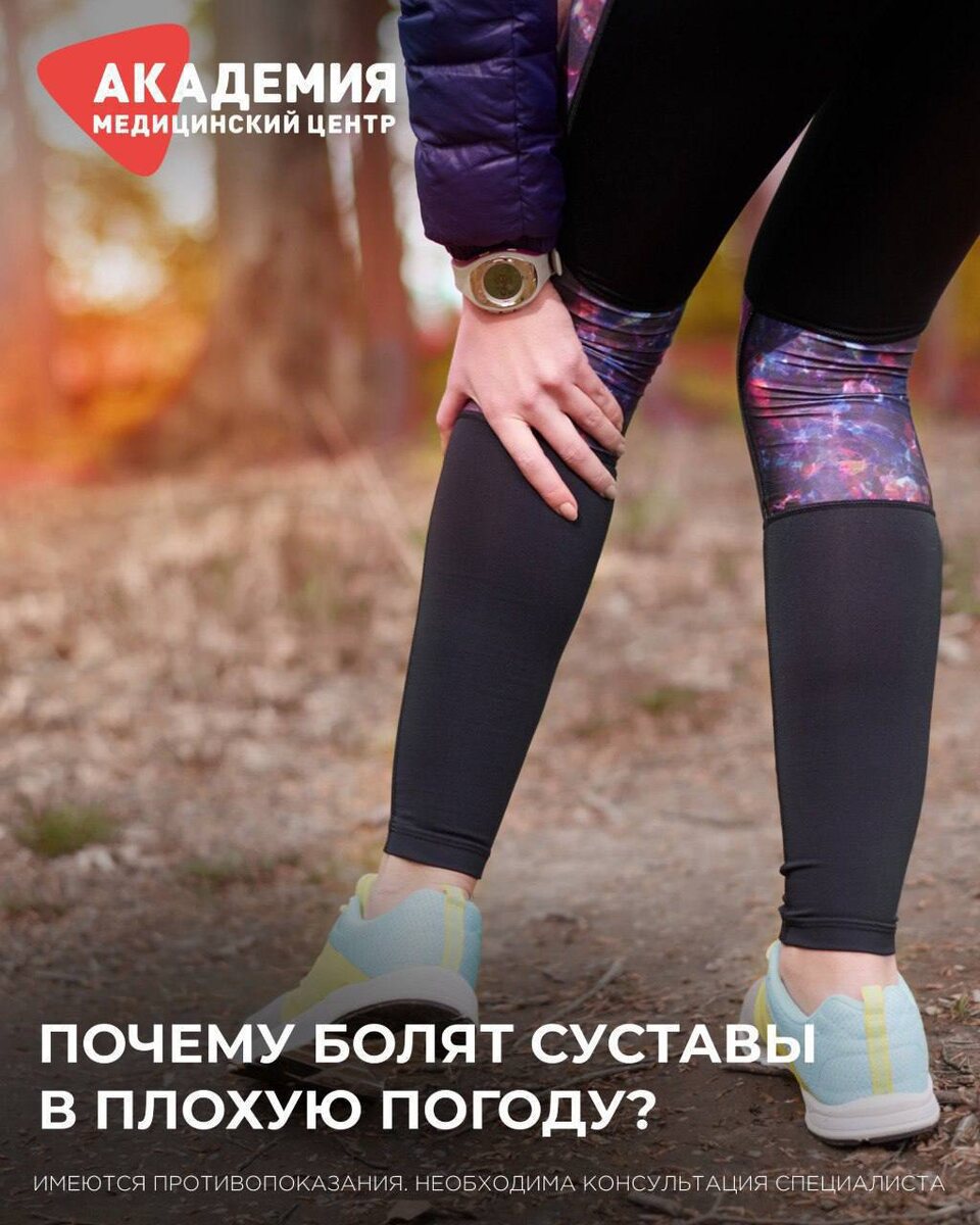 Почему суставы болят в плохую погоду? Многие замечают: стоит похолодать или пойти дождю — суставы начинают ныть и «крутить». Разбираемся, почему так происходит 👇 • Перепады давления. При низком атмосферном давлении ткани вокруг сустава расширяются — боль ощущается сильнее. • Холод. Мышцы спазмируются, ухудшается кровообращение — появляется скованность. • Влажность. Если есть скрытое воспаление, сырость усиливает дискомфорт. • Старые травмы. Повреждённые суставы острее реагируют на изменения погоды. Когда необходимо обратиться к врачу? Если боль повторяется, мешает двигаться, есть отёк или ограничение подвижности — лучше не откладывать осмотр. Что помогает? Тёплые компрессы, лёгкая разминка, регулярная активность, избегание переохлаждений. Если суставы беспокоят часто — специалисты Медицинского центра «Академия» помогут найти причину и подобрать лечение. Будьте здоровы в любую погоду! ♥️ Запись в клинику через👇 — телефон 📞 27-05-05 — сайт 🌐 academy-med.ru — телеграм 🌐 @Acade
