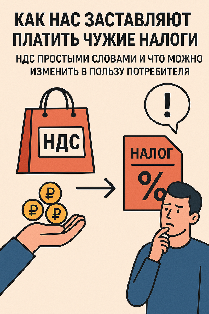 Один из самых "незаметных" и в то же время самых тяжёлых для кошелька налогов — НДС (налог на добавленную стоимость). Формально физические лица его "как бы" не платят, но по факту именно они и несут основное бремя. Возникает логичный вопрос: справедливо ли это, и можно ли изменить систему так, чтобы обычный потребитель не оплачивал налоги за всех участников цепочки?