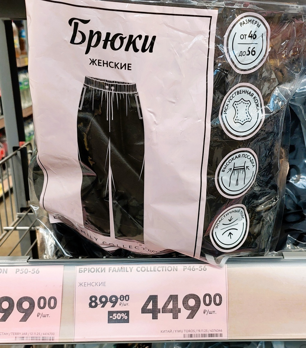 Посмотрите, сегодня в "Чижике" хорошая скидка на отличные Брюки женские из искусственной кожи. Высокая посадка, эластичный пояс. Размер 46-56. новая цена 449 рублей взамен 899