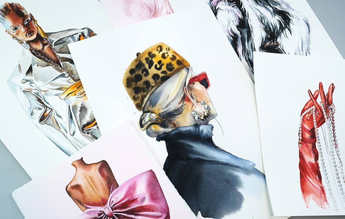🤩 Что помогает Fashion- иллюстрации выглядеть динамичной и реалистичной? 1 Умение рисовать складки на одежде помогает передать объем и материал изделия, чтобы иллюстрация не выглядела плоской. 2 Умение передавать блики, свет и тень в правильных местах, делает иллюстрацию объемной. 3 Умение рисовать различные фактуры: перья, мех, кожу, атлас, кружево, металлик, пайетки. Эти навыки позволяют нам передать образ в нужной стилистике, чтобы сразу же ощутить материал. 4 Умение рисовать принты так, чтобы это было понятно, быстро и без детальной прорисовки. Например леопардовый принт, лучше всего рисовать акварелью по-сырому. 5 Умение работать акварелью так, чтобы не перегрузить иллюстрацию, а оставить ее воздушной, легкой, с красивыми растекающимися эффектами. Автор и преподаватель курса по Fashion- иллюстрации Александра Федюкевич