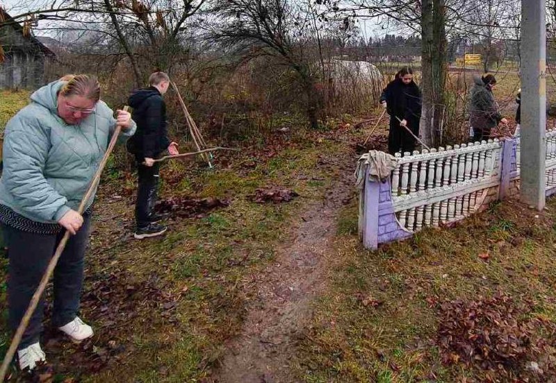 🍂Фотофакт: дружно вышли сегодня на уборку закрепленной территории педагоги и учащиеся Островенской СШ им. К.А. Абазовского