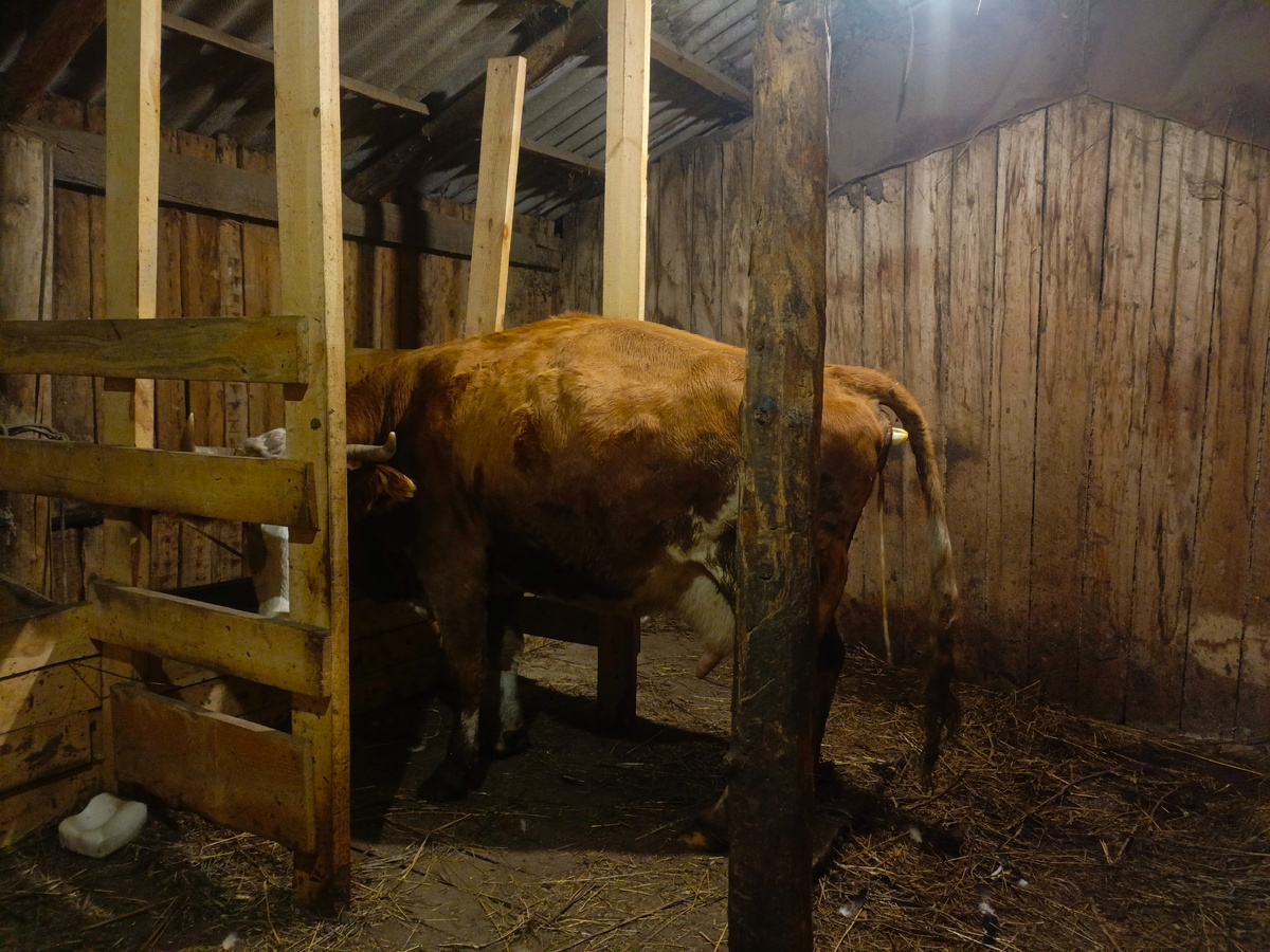 Два дня назад Красотка всё-таки решила отелиться. 😁 Не стала она Майку ждать. 😂 Утром. Мы коров доить, а она "разродилась"... Успели подоить коров и ее в сарай завести - чумовая бегала по загону, не ложилась, а у нее уже копытца торчали. 🤦♀️ В сарай поставили - она не ложится. Пошли домой завтракать, не стали ее смущать. 😁 Без пятнадцати восемь я пошла машину заводить (греть), в сарай заглянула... 👇 Лежат себе... Отдыхают. 😁 Отправила Рому к ним, сама на работу укатила. Рома утром и в обед сам доил-поил. Вечером уже я к ним присоединилась. Высокий на ножках, крепенький бычок. Ттт... Что планируем с ним делать? Первый вариант отпоить до 7-10 дней и продать. Второй - оставить себе. Весной в электропастух. Осенью домой пригоним уже годовалым быком. Молоко подниматься в цене не желает, может и правда оставить себе? 🤔 Красота чувствует себя после отела хорошо. Немного вымя воспалено, но это нормально. Рома на смене сегодня, мне вот честно было лень корову доить. Разогрела бычку ут