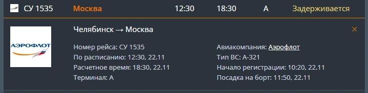 В Челябинске на шесть часов задержали борт до Москвы Рейс «Аэрофлота» СУ 1535 должен был вылететь еще в 12:30. Пассажиры говорят, что провели в самолете несколько часов, сейчас их отправили в здание аэропорта. «Едем в автобусе, поле такое скользкое, что аж автобус таскает», — рассказала одна из пассажирок. 🗯 Ответ из справочной аэропорта. Там сообщили, что вылет борта задерживается по решению авиакомпании. В Челябинск из Москвы самолет прибыл с небольшим опозданием, но оно не было критичным. По погодным условиям задержек рейсов в Челябинске сейчас нет. Причину переноса времени вылета посоветовали уточнять в авиакомпании, но по телефону «Аэрофлота» получить ясность не удалось. «В контактный центр не поступает информация о причинах отмены и задержки рейса», — сообщила оператор.
