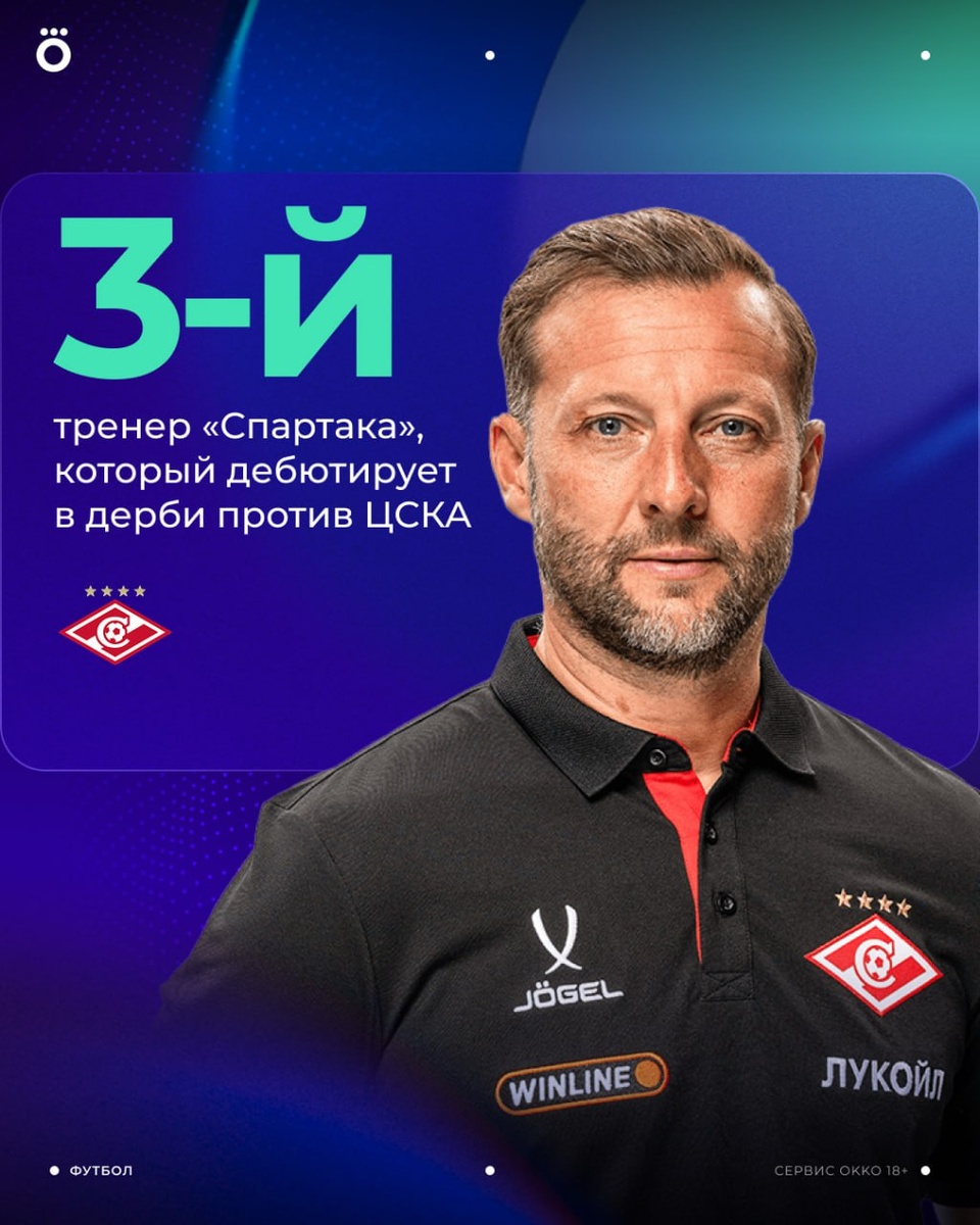 Вадим Романов, исполняющий обязанности тренера «Спартака», станет 3-м наставником красно-белых, который дебютирует в роли главного в дерби против ЦСКА 👀 У предшественников Вадима, Александра Старкова и Паоло Ваноли, дебюты не удались — 2 поражения. Исправит предыдущие ошибки? 😏
