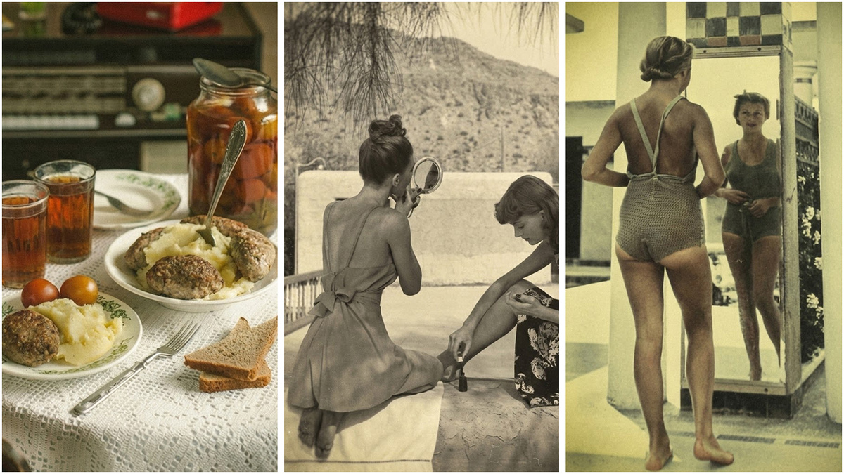 За окном уже темно, ноябрьский ветер стучит веткой в стекло. А у меня в комнате тепло, пахнет жареным луком и уютом. Я включил старую радиолу — она сначала долго грелась, шуршала лампами, а потом тихонько запела что-то из Анны Герман. Сел за стол. На белой скатерти (мама привезла, когда в последний раз навещала) — мой нехитрый холостяцкий ужин. Посмотрите на этот натюрморт. Пюре с маслом, две большие домашние котлеты (сам крутил, честное слово!), соленые помидоры из трехлитровой банки и крепкий чай в граненых стаканах. Вкусно? Безусловно. Но если приглядеться, от этого кадра веет тишиной. Приборов на столе вроде бы два — вилки лежат, хлеб нарезан с запасом. Это у меня привычка такая: накрывать так, будто я кого-то жду. Но стул напротив пуст. Я откусил помидор, хлебнул чаю и потянулся к пачке фотографий. В такие вечера почему-то всегда тянет подумать: а правильно ли я живу? Листаю дальше. Море. Этот кадр я сделал в прошлом отпуске, но так и не решился никому показать. Девушка стоит н