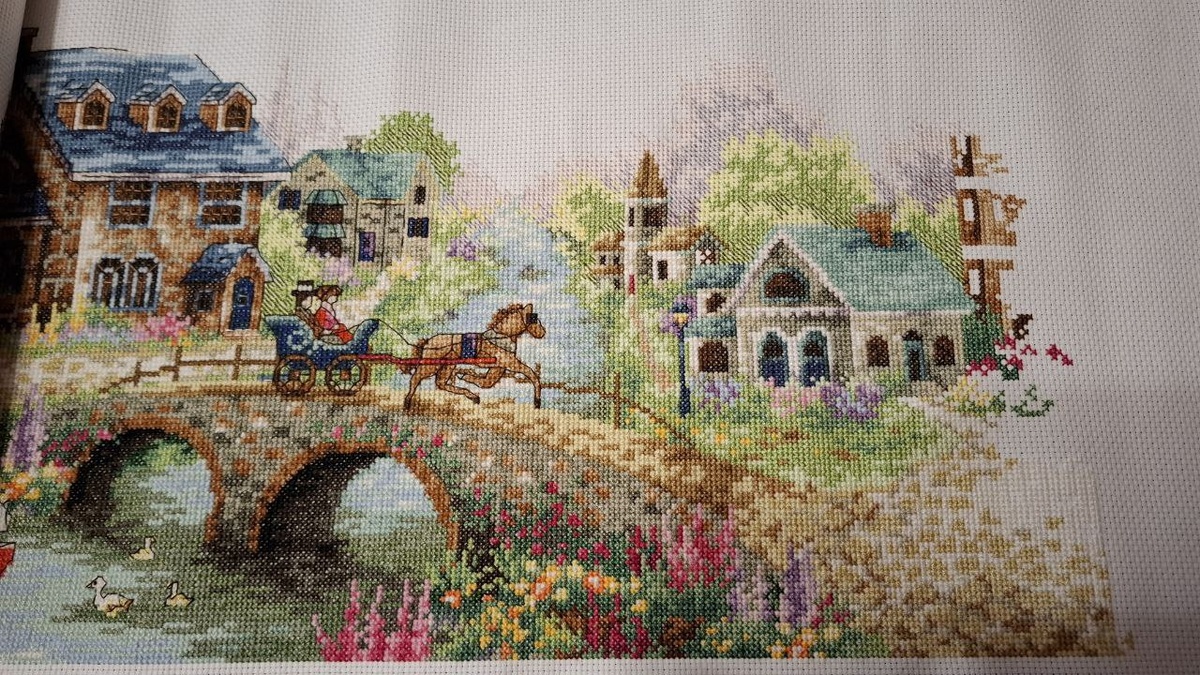 Всем привет 🤗 У меня последнее время удаётся посвятить не так много времени любимому рукоделию, но все равно продвижения есть😃 Осталось чуть больше 1500 стежков и будет готово 90%, а там не за горами и финиш😉 Приступила я к строительству последнего дома на этой улице и все чаще стала задумываться о пустом пространстве в небе. И хочется и колется вышить небо, но боюсь, что этот процесс затянется еще на парочку лет 🤔