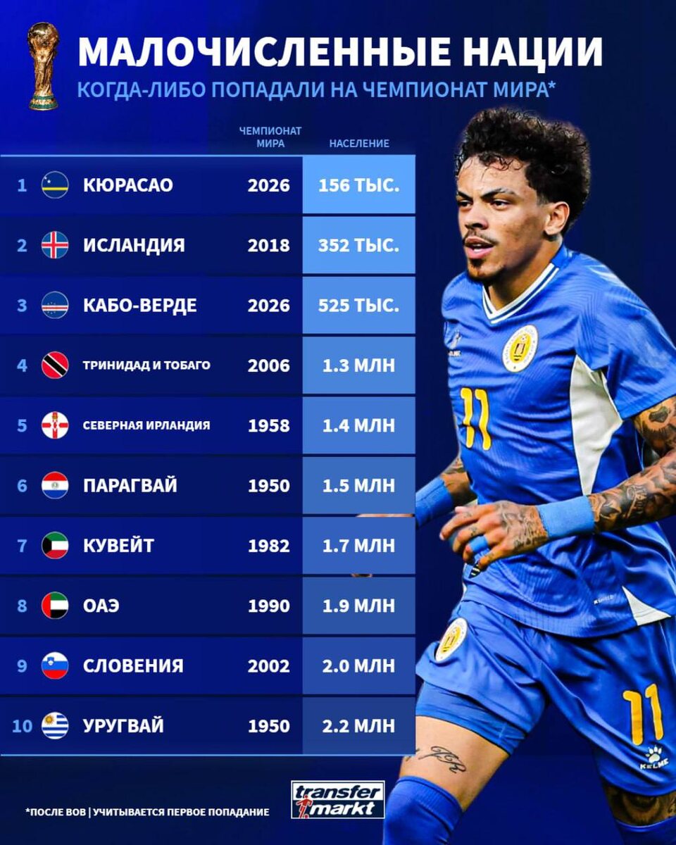Страны с самым малочисленным населением, которые выходили на Чемпионат мира по футболу ⚽️