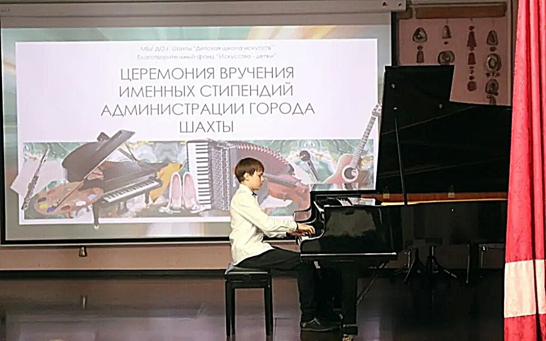Вручены свидетельства на получение именных стипендий В Центре искусств имени Рахманинова прошла ежегодная торжественная церемония награждения стипендиатов администрации города Шахты. В их числе победители международных, всероссийских, региональных и областных выставок, фестивалей и конкурсов. Традиционно всё началось с концерта, где виновники торжества продемонстрировали свои таланты. Затем замглавы администрации Светлана Морозова вручила свидетельства стипендиатам и Благодарственные письма их педагогам. Стипендий администрации удостоились Ефрем Афанасенко, Центр искусств имени Балакирева, класс преподавателя В.С. Афанасенко; Иван Дегтярёв, Центр искусств имени Кабалевского, класс преподавателя Н.А. Нежновой; Богдан Журавлёв, Центр искусств имени Чайковского, класс преподавателя В.В. Шарова; Алиса Рыданова, Центр искусств имени Рахманинова, класс преподавателя Н.Ю. Рыжковой; Елизавета Слесарева, Центр искусств имени Кабалевского, класс преподавателя Т.В. Бондаренко; Елизавета Теличк