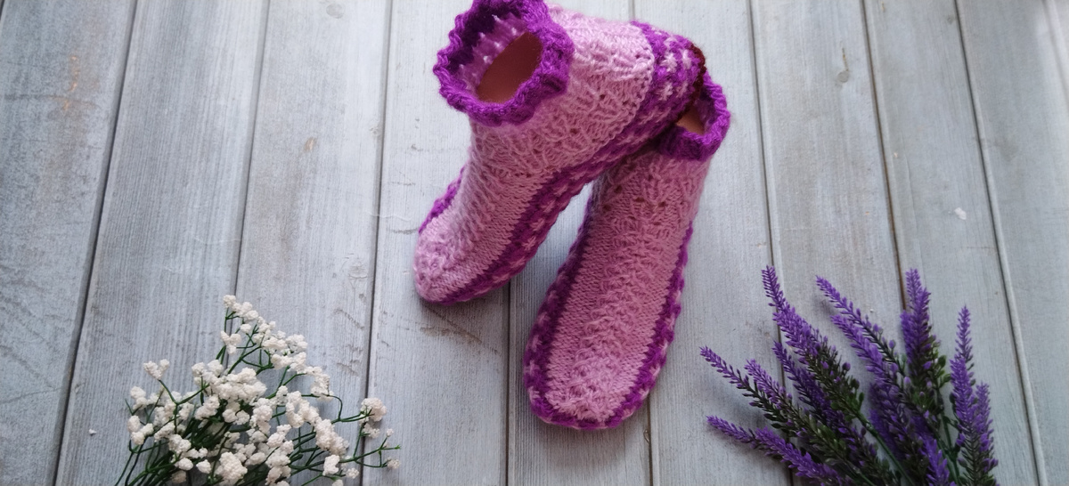 Второй заказ поступил из Краснодарского края, г. Краснодар от Анастасии. Она попросила связать мне 2 пары тапочки с ажуром. Такой МК есть у меня на канале ☺