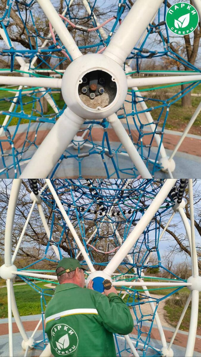 Специалисты провели комплексные ремонтные работы в парке Учкуевка Удалили рисунки и граффити с игровых и спортивных объектов, выполнили ремонт крепежных элементов качелей и крепежа канатов на игровых комплексах для обеспечения безопасной эксплуатации. Также установили крышки соединительного шара для защиты конструктивных элементов и увеличения срока службы и новую панель на игровой комплекс. 📺 Подписывайтесь на СТВ в MAX