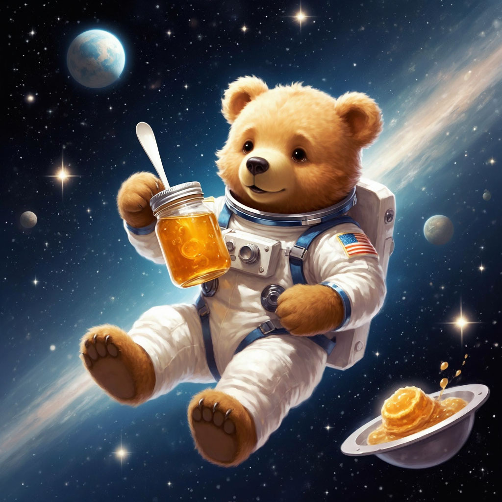 Идея использования меда в космосе связана с российским космонавтом Владимиром Комаровым и Башкирией, где этот продукт ценится и имеет долгую историю. Инициатива по внедрению меда в рацион космонавтов принадлежит специалистам, работающим с космическим питанием, а конкретный человек, придумавший это, не известен. Мёд используют в космосе с начала 2000-х годов, поставляя его в специальных тюбиках как продукт башкирской кухни. Дополнительное питание в виде мёда дают космонавтам во время длительной подготовки, а затем он становится частью их рациона на орбите. В условиях невесомости мёд, как и вода, ведёт себя иначе – он собирается в шарики и летает. Использование мёда в космосе