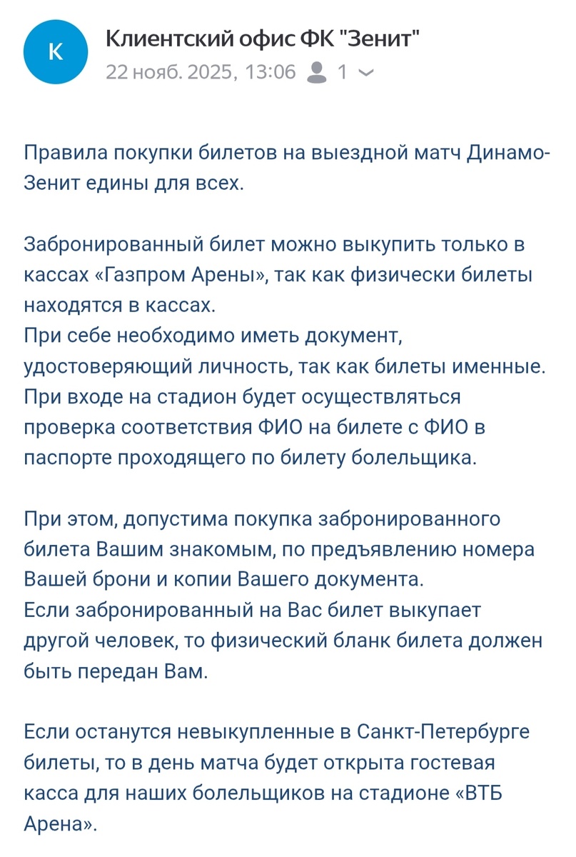 Терпеть ненавижу фамильярности и всегда называю лишь полным именем: Санкт-Петербург. Однако, в таких случаях выражение уместно... В голове не укладывается в 2025 году, но в век высоких технологий, онлайн-жизни и искусственного интеллекта город Санкт-Петербург продемонстрировал дореволюционно-архаичные нравы. Чтобы пойти на матч Зенита в Москве......надо купить билет в кассе на Крестовском острове в Санкт-Петербурге. Да-да, не верите? Видимо, фанатская поддержка на чужом поле Зениту не нужна. Мне всё же удалось заполучить билет⚽ шпионский детектив Санкт-Петербург - Москва читайте на моём основном Творческом канале уже скоро: ... Зенит вдохновляет! Хоть и не любит публику.