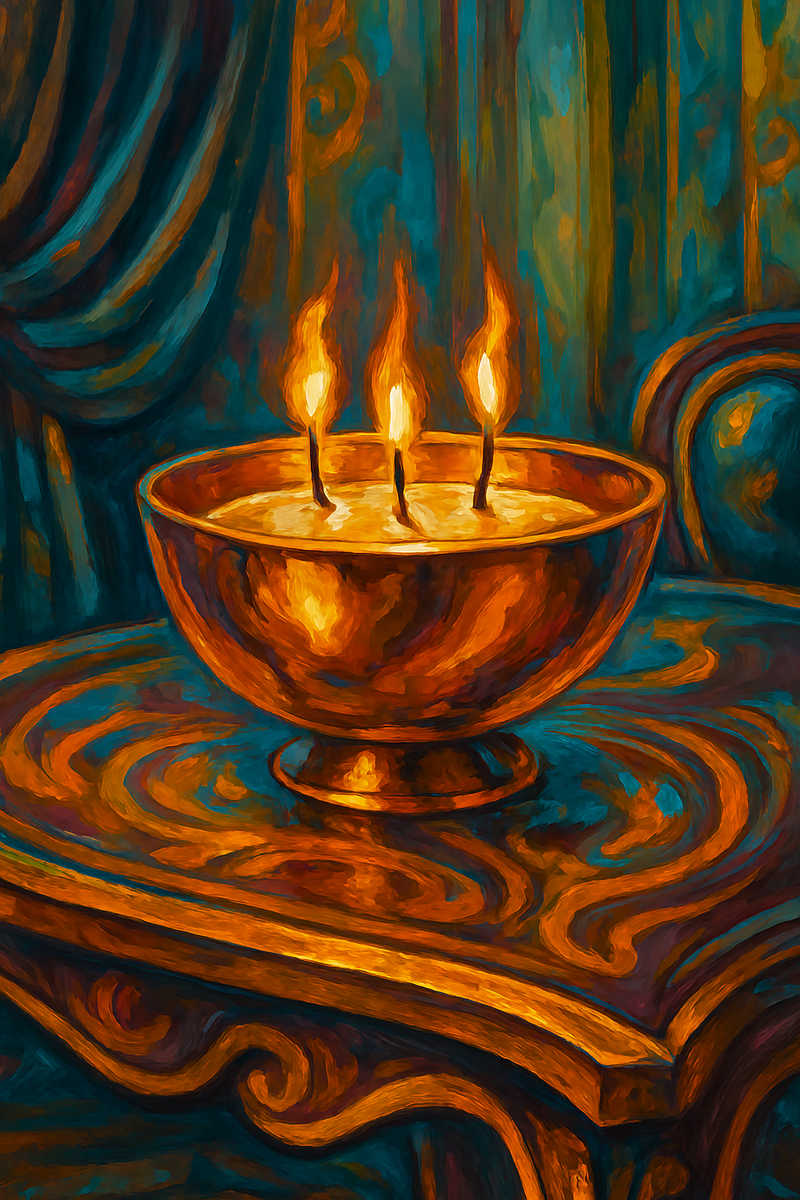 Напишите свое желанiе на небольшомъ листкѣ бумаги. Положите эту бумагу на дно небольшой чаши, которую на двѣ трети заполните оливковымъ масломъ. Также добавьте въ масло три щепотки сахарнаго песка или немного меда. Скрутите изъ хлопковыхъ нитей небольшой фитиль (можно использовать и обычный фитиль, извлеченный изъ свѣчи), который помѣстите въ масло такъ, чтобы одинъ его конецъ возвышался надъ поверхностью жидкости. Жгите эту масляную лампу, задумавъ, что данное дѣйство прибавляетъ силъ вашей мечтѣ и помогаетъ ей стать реальностью.