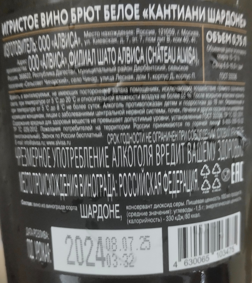 Зайдешь на салон вин Форбс, а там игристое из Дагестана. Скрывается под странным импортным названием. Но как есть. Маркетинг он такой, загадочный. Но вино мы любим не за это. И хотя я не очень люблю Шардоне, но почему бы не попробовать, так сказать ознакомиться с продукцией производителя Алвиса. Известны они своими коньяками, но вот и вино делают. Метод Шарма, сахар порядка 6 грамм/литр. Цвет светло-желтый. В аромате леденцы, груша, зеленое и желтое яблоко, цитрусовые, персик и немного абрикоса. Во вкусе средняя кислотность, среднее тело, короткое лимонное послевкусие. Во вкусе груша. Просто и очень незамысловато. Балла 83.