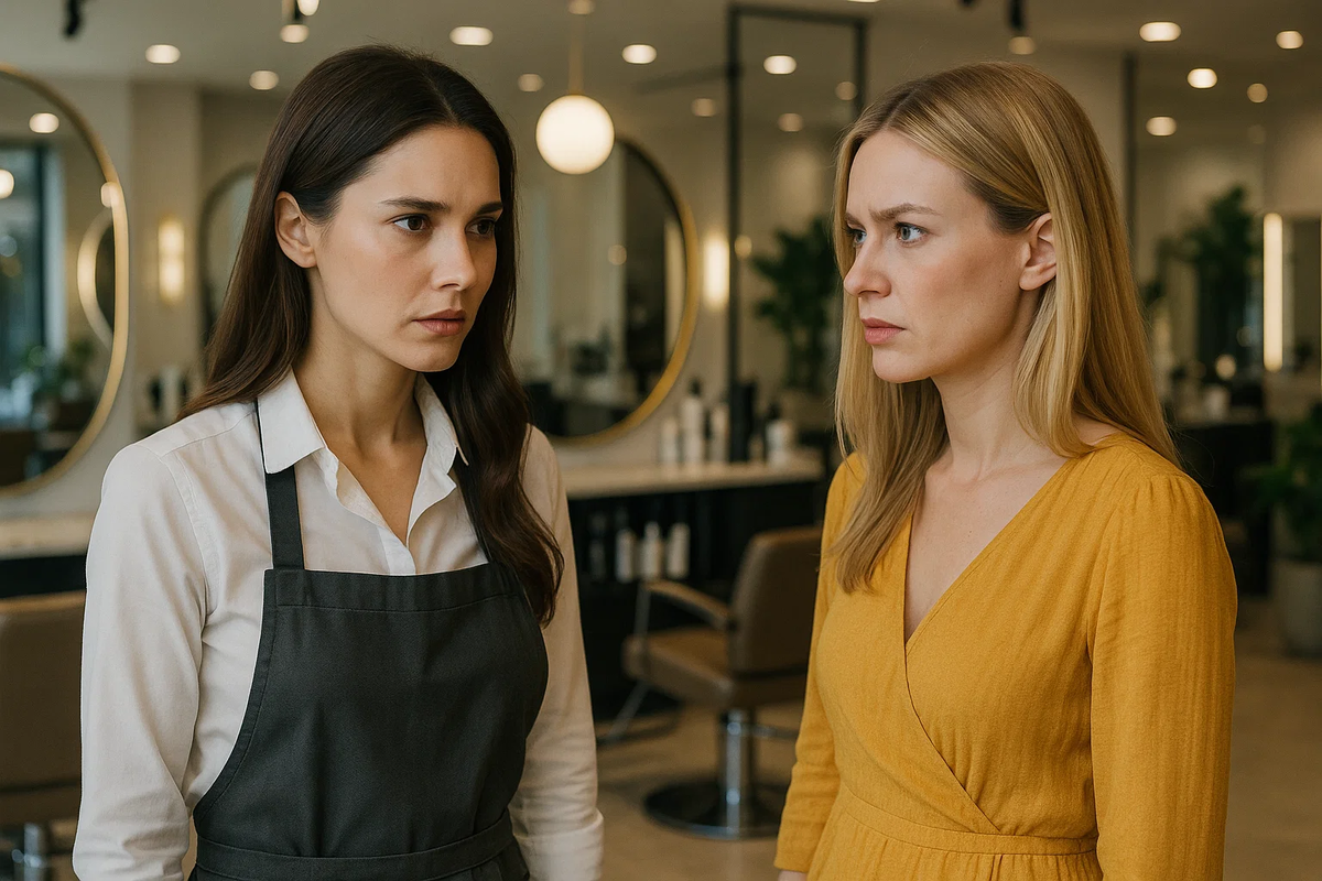 В салоне её уже ждала первая клиентка — молодая девушка со светлыми волосами.