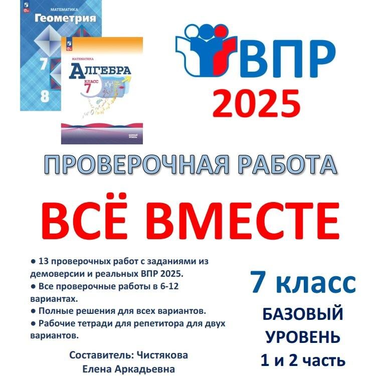 ❗Внимание❗⭐Обновление⭐(есть обновления в файлах ответы, отмеченных знаком❗️, исправили ошибки) Кто брал, скачайте бесплатно. 🆗Проверочные работы для подготовки к ВПР 7 класс 📥Купить всё вместе: digital.wildberries.ru/offer/548720 📥Купить по отдельности: Алгебра: 🔹Логика digital.wildberries.ru/offer/492604 ❗🔹Натуральные числа digital.wildberries.ru/offer/492821 🔹Дроби digital.wildberries.ru/offer/504559 🔹Линейные уравнения digital.wildberries.ru/offer/499216 ❗🔹Проценты digital.wildberries.ru/offer/494112 🔹Таблицы и графики digital.wildberries.ru/offer/499182 🔹Задачи на движение (1 часть) digital.wildberries.ru/offer/492828 ❗🔹Задачи на движение (2 часть) digital.wildberries.ru/offer/495994 ❗🔹Формулы сокращенного умножения digital.wildberries.ru/offer/499198 🔹Системы уравнений digital.wildberries.ru/offer/498110 Геометрия: 🔹Начальные геометрические сведения digital.wildberries.ru/offer/487156 🔹Параллельные прямые digital.wildberries.ru/offer/487158 🔹Треугольники dig