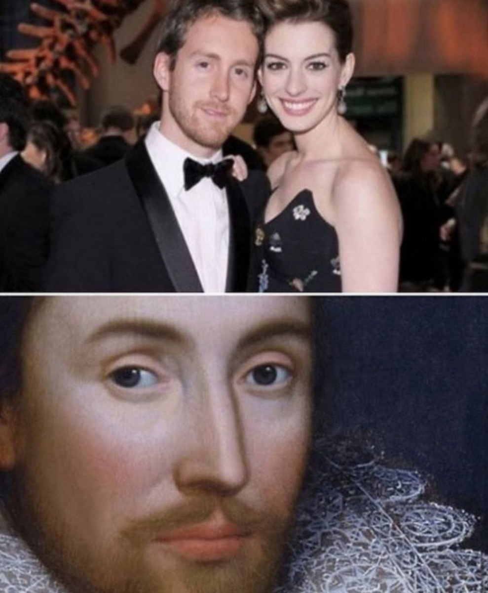 Красоту Энн Хэтэуэй часто обсуждают, но как насчёт того, что её муж очень похож на Шекспира, а жену Шекспира звали Энн Хэтэуэй? Продолжаем не верить в реинкарнацию? 🙂🙂🙂 #персоны