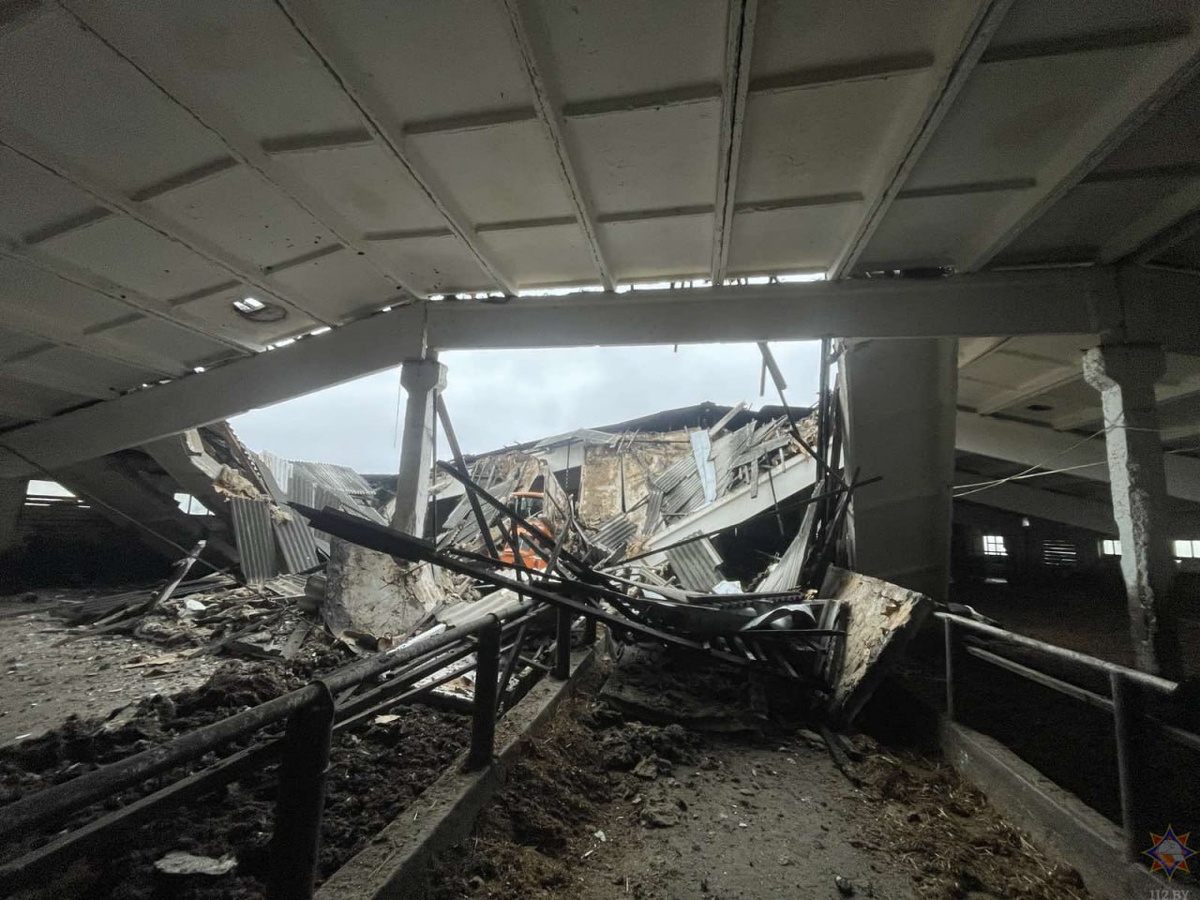 В Рогачевском районе обрушилась кровля коровника Сегодня днем на номер 112 поступило сообщение об обрушении кровли в здании коровника в агрогородке Заболотье. По прибытии к месту происшествия спасателей выяснилось, что в результате обрушения кровли на площади около 240 квадратных метров под конструкциями оказалась зажата корова. На момент обрушения в здании находилось 330 коров, 329 покинули здание самостоятельно. Работники МЧС с использованием инструмента из-под обрушившихся строительных конструкций корову извлекли. Пострадавших нет. Причина происшествия устанавливается.