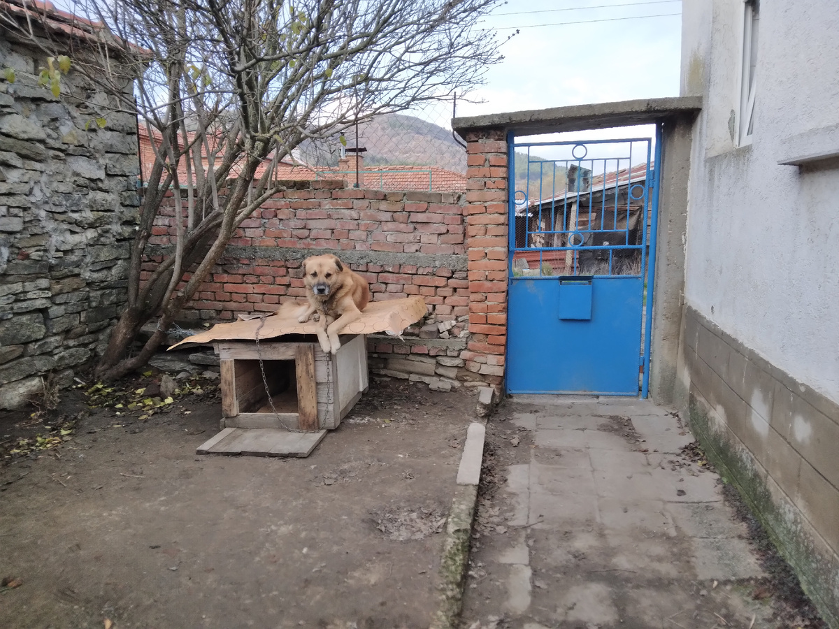 Ну, вот, у Тосика теперь новая будка. Вообще- то она первоначально предназначалась для другого пса. Односельчанин Валерий сколотил эту конуру полгода назад, когда подобрал своего Мечо. Кстати, Мечо и Тосик внешне удивительно похожи, только у Мечо окрас немного другой. Тосик ярко- рыжий, а у Мечо шерсть рыжая с серым оттенком. В остальном- один к одному. Когда Мечо появился в селе, мне даже говорили, что, мол, Тосик по улицам бегает. Кстати, в соседней Турции очень много собак такого типа. Вполне возможно, это какая- то аборигенная порода, разновидность кангала. Анатолийских овчарок существует несколько типов. Только вот Мечо спать в будке не пожелал. Валерий говорит, что тот выкапывает ямки в земле и на ночь в них укладывается. Игнорирует даже тёплые подстилки, которые Валерий кладёт рядом с этими ямками. Шерсть у Мечо густая, длинная, с очень плотным подшёрстком, видимо, ему не холодно. Валерий решил, что будка вряд ли когда потребуется и её можно отдать. Общими усилиями будку перев