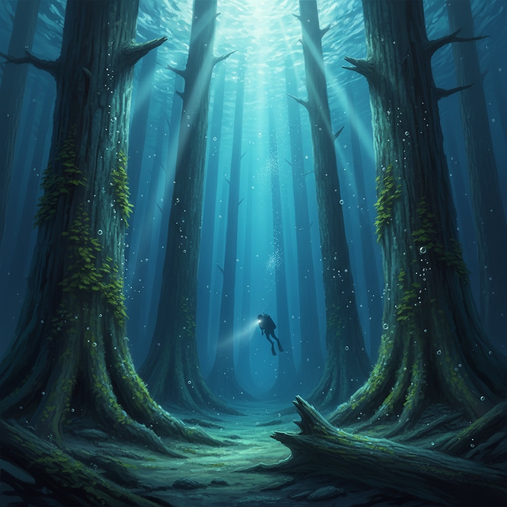 Представьте: вы плывете по спокойной глади озера или реки. Под вами — лишь темная, прохладная вода. Но на самом деле, внизу может находиться не просто дно, а целый затонувший лес, который хранит тайны веков и невероятное богатство. «Шепот Архивов» раскрывает удивительную историю "затонувших лесов" — подводных кладбищ из идеально сохранившихся древних деревьев, которые столетиями пролежали на дне. Почему эти стволы, срубленные еще до появления наших прадедов, сегодня стоят баснословных денег, и кто те люди, что ведут за ними настоящую подводную охоту? 🌲 Лес, застывший во времени: Как деревья «умирают», чтобы жить вечно Мы привыкли, что дерево, упавшее в воду, со временем сгнивает. Но это не всегда так. В определенных условиях вода становится не могилой, а идеальным консерватором. Вот как возникает феномен "затонувшего леса": Срубленные века назад: Тысячи гектаров лесов были вырублены в XVIII, XIX и начале XX веков. В те времена деревья часто сбрасывали в реки, чтобы течение несло