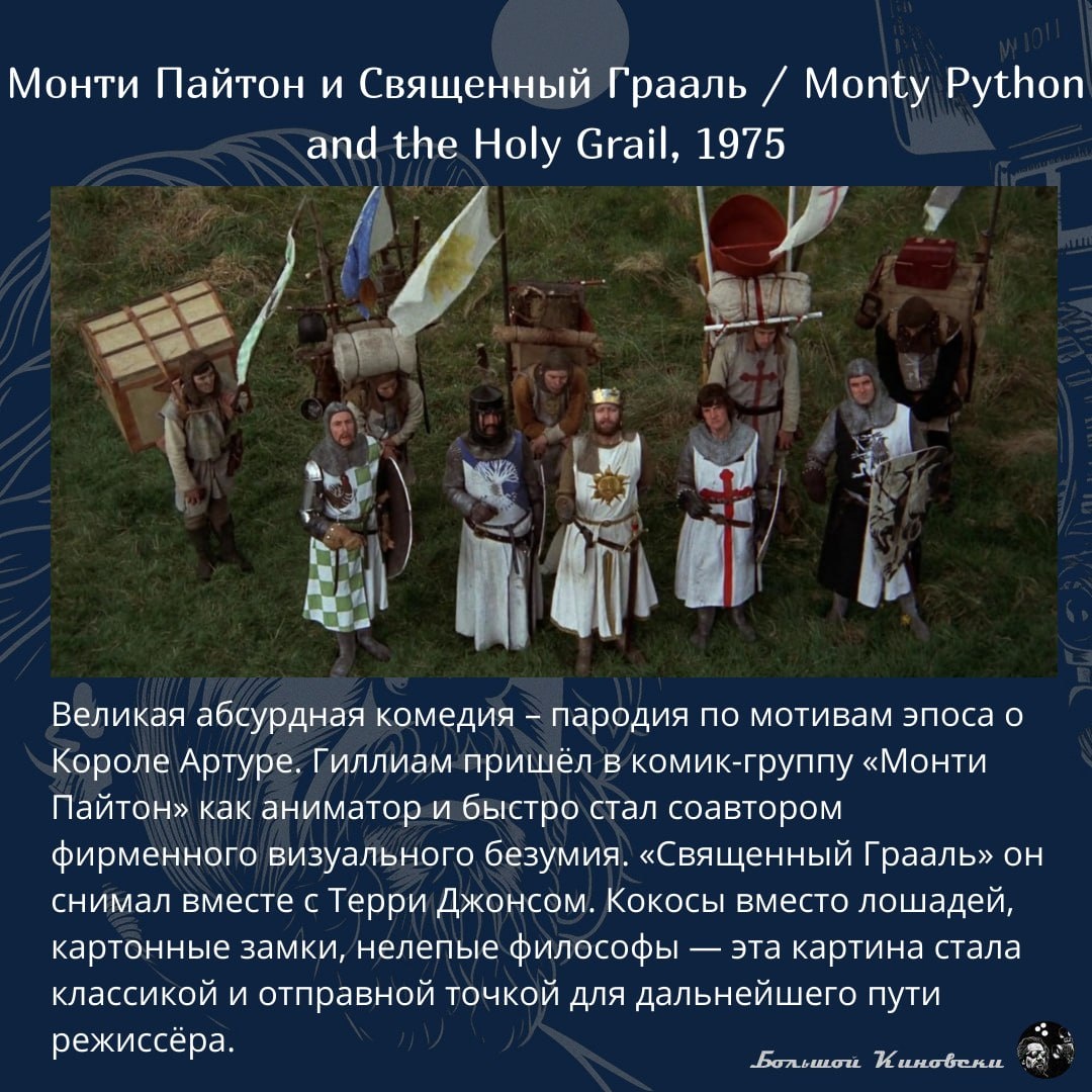 Последний рыцарь Британии. Терри Гиллиаму – 85! В эпоху, когда кино всё чаще подчиняется алгоритмам и трендам, Терри Гиллиам остаётся редким примером подлинного рыцарства в искусстве — человеком, который всю жизнь сражается за свободу воображения и дерзость мысли. Сценарист, актёр, режиссёр, художник, аниматор, неизменный участник комик-группы «Монти Пайтон». Гиллиам — мастер абсурда, фантастических и сюрреалистических картин с уникальным стилем, где сказочность и гротеск переплетаются с утончённой философией. По традиции представляем избранные работы. Большой Киновски 🎬 | #киноперсона #киноподборка #картотека