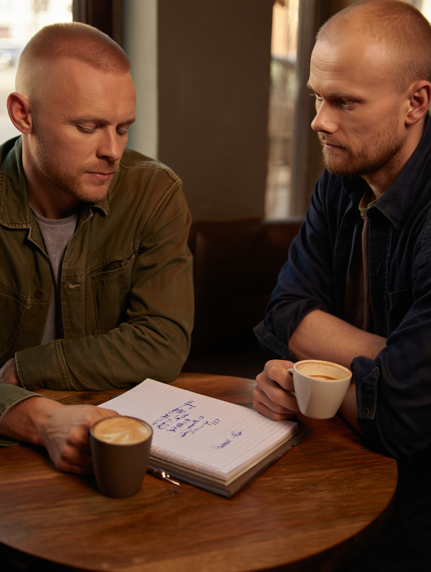 Игорь нашёл Олега, сорок пять лет, тоже электрик. Олег тоже боролся с алкоголем (8 месяцев трезвости) и хотел наладить отношения в семье. Они встретились, поговорили честно. Олег сказал: "Я 8 месяцев не пью, но каждый день борюсь. Мне тоже нужна поддержка". Игорь: "Я только начинаю, срываюсь постоянно, мне нужен кто-то, кто покажет, что это возможно". Они договорились о партнёрстве. 🤝