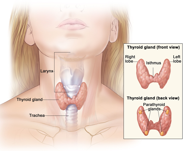 Околощитовидные железы (паращитовидные железы, glandulae parathyroideae, ПЩЖ) располагаются на задней поверхности боковых долей щитовидной железы с каждой её стороны (иногда только с одной), вблизи крупных ветвей щитовидных артерий, в толще рыхлой клетчатки, залегающей между фиброзной капсулой щитовидной железы и её фасциальным влагалищем; иногда они находятся за пределами влагалища. Паращитовидные железы у взрослых обычно представляют собой овальные образования размером от 2 до 8 мм с гладкой блестящей поверхностью; в детстве бледно-розовые и слегка прозрачные, с возрастом принимают буровато-желтоватую окраску, что делает их мало отличимыми от близко лежащих лимфатических узлов. Консистенция паращитовидных желез несколько плотнее, чем щитовидной железы. Различают две пары желез: две верхние паращитовидные железы (glandulae parathyroideae superiores) и две нижние паращитовидные железы (glandulae parathyroideae inferiores). Число паращитовидных желез непостоянно – от 1 до 7-8. Продоль