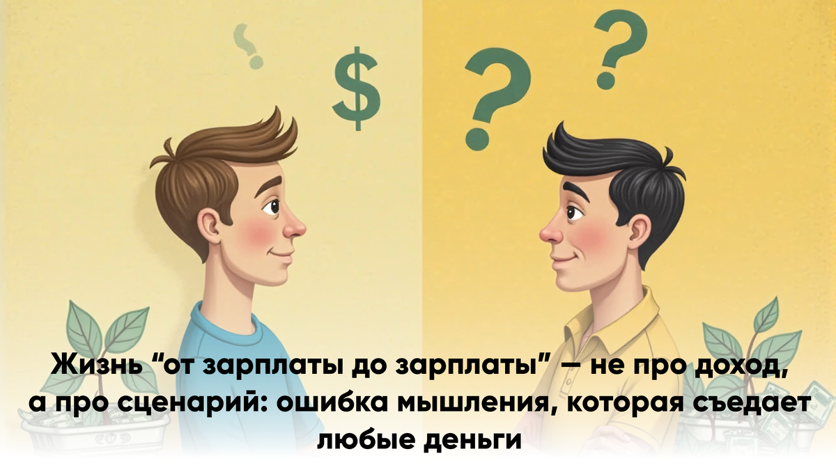 Жизнь “от зарплаты до зарплаты” — не про доход, а про сценарий: ошибка мышления, которая съедает любые деньги