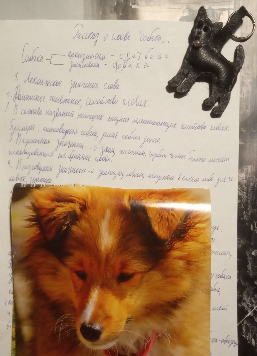 Всем привет! Недавно на уроке русского языка в 3 классе нам задали выполнить творческий проект "Рассказ о слове". Я люблю собак, поэтому выбрал слово "собака"! Сейчас покажу вам, что у меня получилось. В первом пункте надо было написать лексическое значение слова. У слова "собака" несколько значений, и я выписал их из словаря. Потом нужно было по плану подобрать к слову "собака" однокоренные слова, синонимы, антонимы, а также указать сочетаемость слова. Затем - записать фразеологизмы, пословицы и загадки с этим словом. Наконец, было задано выписать из какого-либо стихотворения предложения со словом "собака". Я выбрал стихотворение Д. Хармса, оно показалось мне забавным! В качестве иллюстрации к проекту нужно было самому нарисовать собаку. Вот что у меня получилось! Мне было интересно работать над творческим проектом по русскому языку "Рассказ о слове "Собака""! Я узнал много нового и полезного. *** Ещё об учёбе и моих творческих проектах: Если вам понравилась статья о творческом проект