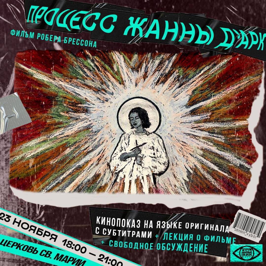 КИНОПОКАЗ В КИРХЕ ПРОЦЕСС ЖАННЫ Д'АРК | PROCÈS DE JEANNE D'ARC | 1962 🏆 Канны: Приз жюри, приз Международной католической организации в области кино (OCIC) за лучшую режиссуру 🗓️ 23 ноября 18:00 📍 Евангелическо-Лютеранская церковь имени Святой Марии, Ленина 100 «Процесс Жанны д’Арк» (1962) Робера Брессона — это одно из ключевых произведений режиссёра, предельно строгое и формально выверенное кино, построенное почти полностью на протоколах реального суда. Брессон последовательно отказывается от внешней выразительности и работает с минималистичной актёрской игрой, точным звуком и ритмом монтажа. Его фильм часто называют одним из самых точных и бескомпромиссных экранных прочтений материала. По сравнению со «Страстями Жанны д’Арк» Карла Теодора Дрейера (1928), где эмоциональная сила достигается через крупные планы, пластическую интенсивность кадра и выразительную игру актёров, версия Брессона стремится к документальной сухости. Дрейер создаёт мощную экспрессию, тогда как Брессон ко
