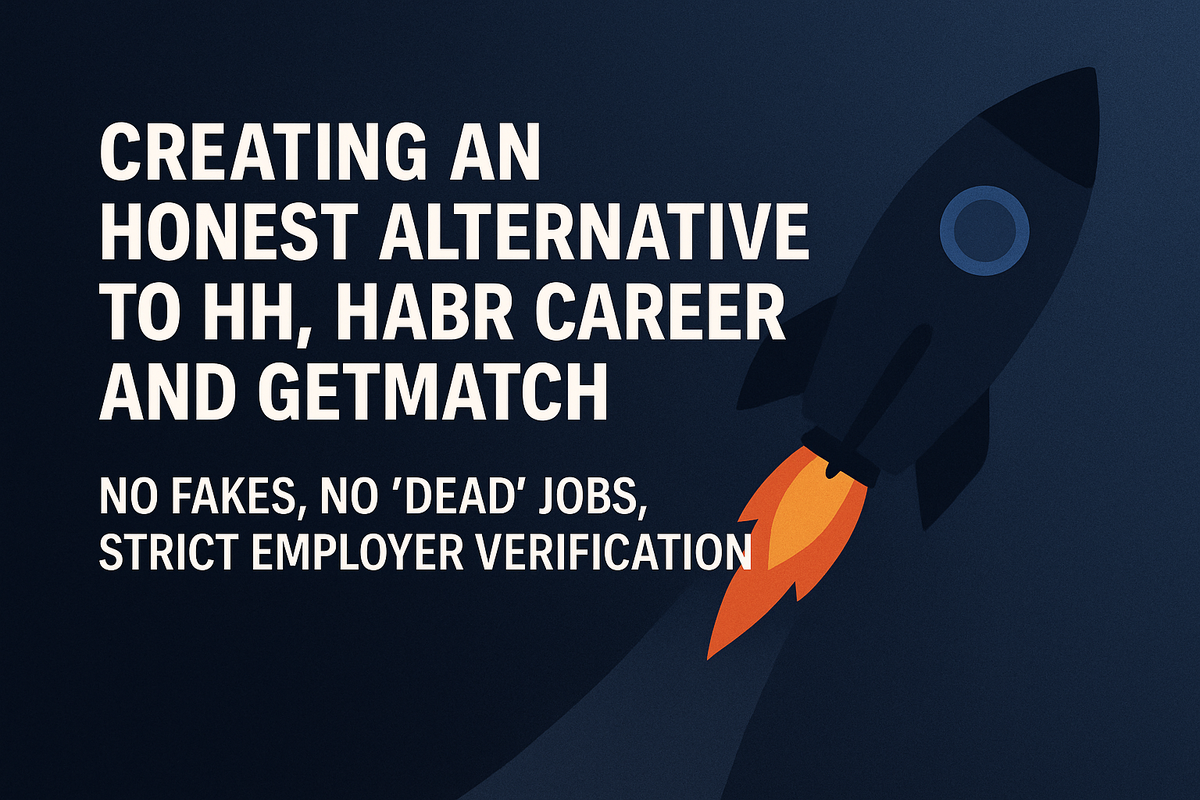 Создаю честную альтернативу HH, Habr Career и GetMatch: без фейков и “мертвых” вакансий. Привет. Меня зовут Митрий, я frontend-разработчик, который последние несколько лет активно живёт внутри российского IT-рынка: работа, фриланс, переговоры, вакансии, отбор, найм и обратная сторона рекрутинга. Я прошёл путь от «новичка с небольшим опытом» до разработчика, который сам проводил собеседования и помогал другим ребятам устраиваться, и в итоге пришёл к простому выводу: сегодня российские платформы для поиска работы работают не в интересах разработчика, а в интересах количества. Именно поэтому я решил сделать свою платформу.