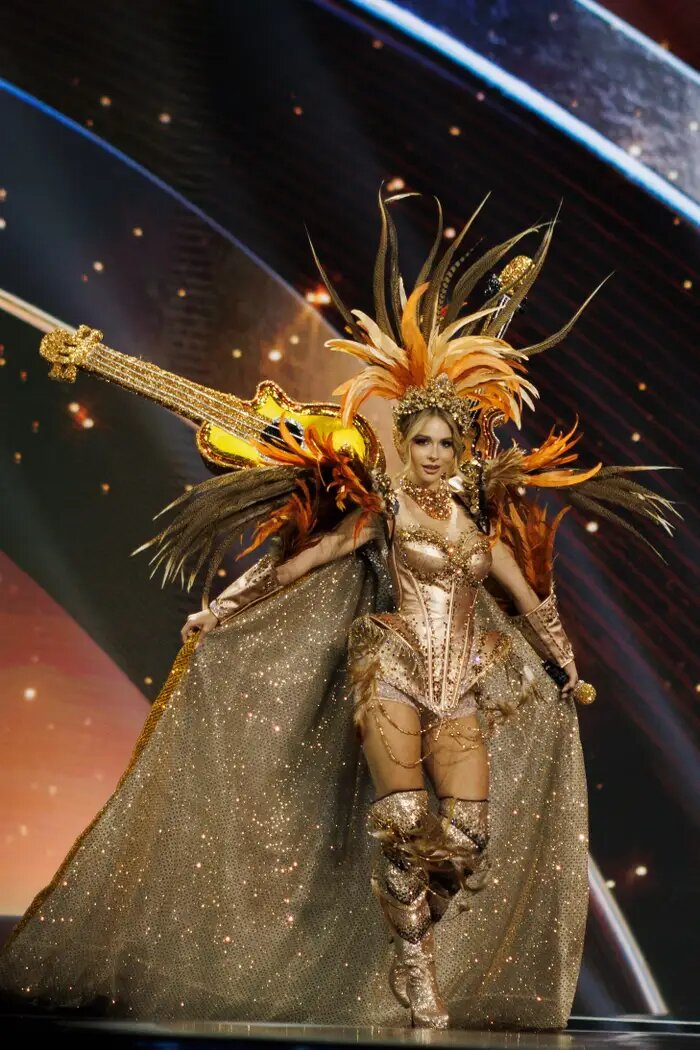 Мисс Аргентина блистала в костюме, который посвящен аргентинскому фолк-музыканту Атауальпе Юпанке.