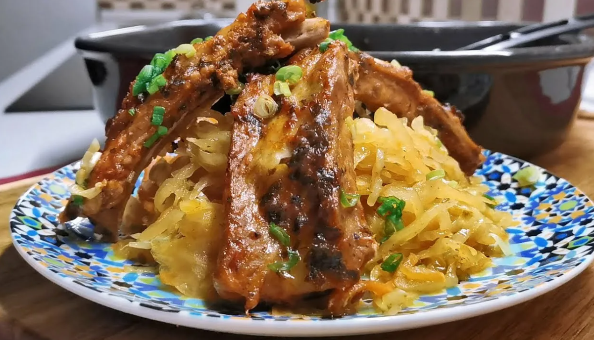 Квашеная капуста, запечённая с айвой и копчёными рёбрами - это блюдо, в котором соединяются яркая кислинка