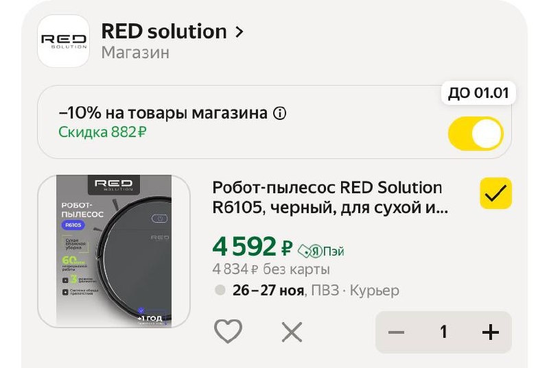 Робот-пылесос RED Solution R6105, черный, для сухой и влажной уборки
