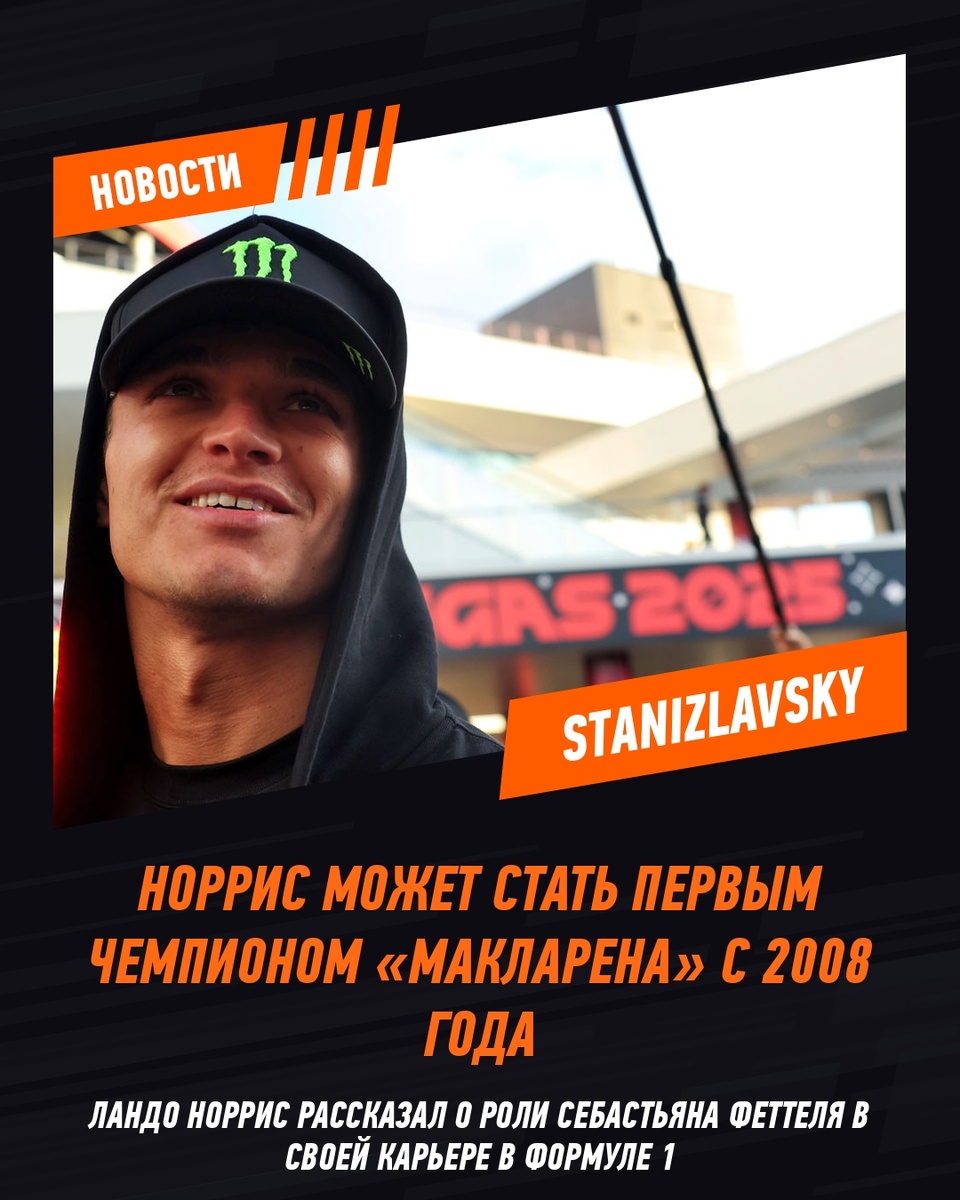 Норрис находится на пути к завоеванию своего первого титула чемпиона Формулы-1 за три этапа до конца сезона. 🏆 Норрис имеет преимущество в 24 очка над напарником по команде McLaren Оскаром Пиастри перед воскресной гонкой в Лас-Вегасе. Благодаря серии побед он максимизировал шансы на титул - он может стать первым чемпионом мира в составе McLaren с 2008 года. 🚗 В начале года Норрису было непросто с машиной, но с тех пор его форма пошла вверх. Он не финишировал позади Пиастри ни разу с Гран-При Бельгии, прошедшего перед летним перерывом. Пиастри поддерживает Марк Уэббер, а у Норриса — близкий союзник в лице Себастьяна Феттеля. По иронии, Уэббер и Феттель долгое время соперничали в Red Bull, особенно в 2010 году, когда оба боролись за титул. Феттель вырвал победу после неудачного финала сезона для Уэббера: авария в Корее и ошибка в стратегии на Гран-При Абу-Даби. 💬 Норрис рассказал, как Феттель «очень помогал» ему на протяжении многих лет, особенно в «плохие, но и в хорошие вре