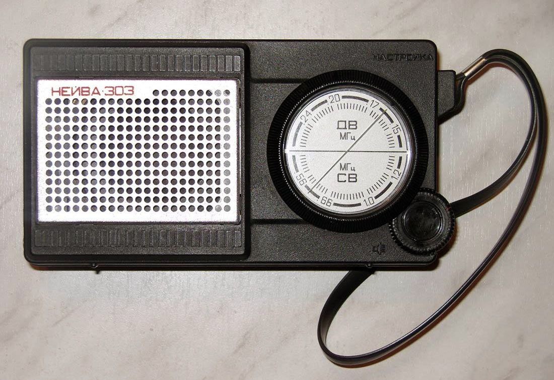 «Нейва-303» портативный радиоприёмник. С 1986 года Каменск-Уральский приборостроительный завод приступил к производству радиоприёмника Нейва-303. По своей конструкции и внешнему виду он был похож на модель Нейва-403, но имел отличия в электрической схеме и монтаже. Нейва-303 мог принимать радиостанции в диапазонах ДВ и СВ, используя внутреннюю магнитную антенну. Питание осуществлялось от батареи Крона-ВЦ или Корунд. В приёмнике были предусмотрены гнёзда для подключения головного телефона и внешней антенны. Футляр радиоприёмника был изготовлен из ударопрочного чёрного полистирола с дюралевой накладкой. Чувствительность в диапазонах ДВ составляла 2,8 мВ/м, а в СВ — 1,6 мВ/м. Селективность достигала 20 дБ. Диапазон воспроизводимых частот варьировался от 450 до 3150 Гц. Выходная номинальная мощность составляла 100 мВт, а максимальная — 150 мВт. Размеры приёмника составляли 145х80х38 мм, а его вес без батареи — 370 грамм. Выпуск Нейва-303 был недолгим, и уже в 1987 году завод приступил к