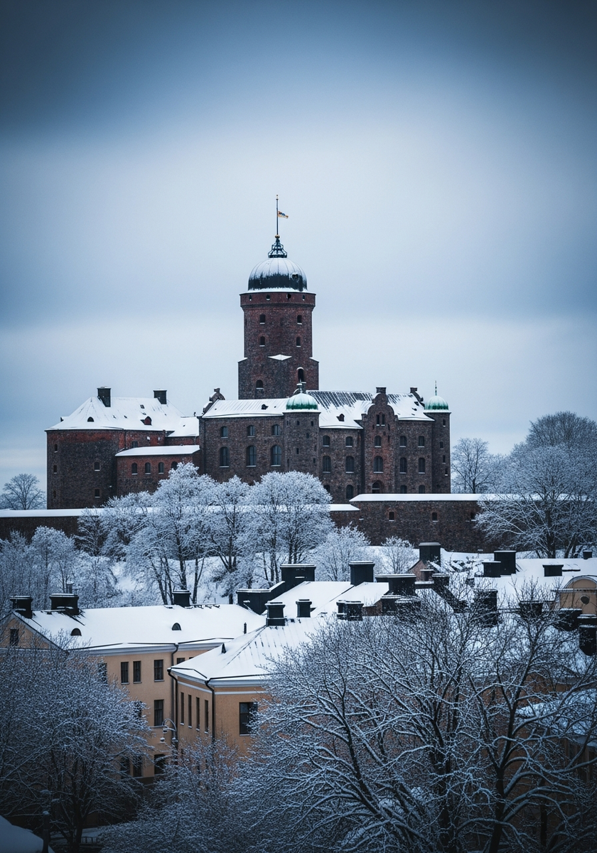Сегодня в замке работает музей с экспозициями о разных эпохах истории города. Можно увидеть рыцарские доспехи и оружие, подняться на башню Олафа, откуда открывается захватывающий вид на заснеженный город, и посетить казематы с пыточными приспособлениями. Зимой особенно уютно греться в музейных залах между прогулками по открытым галереям крепости.
