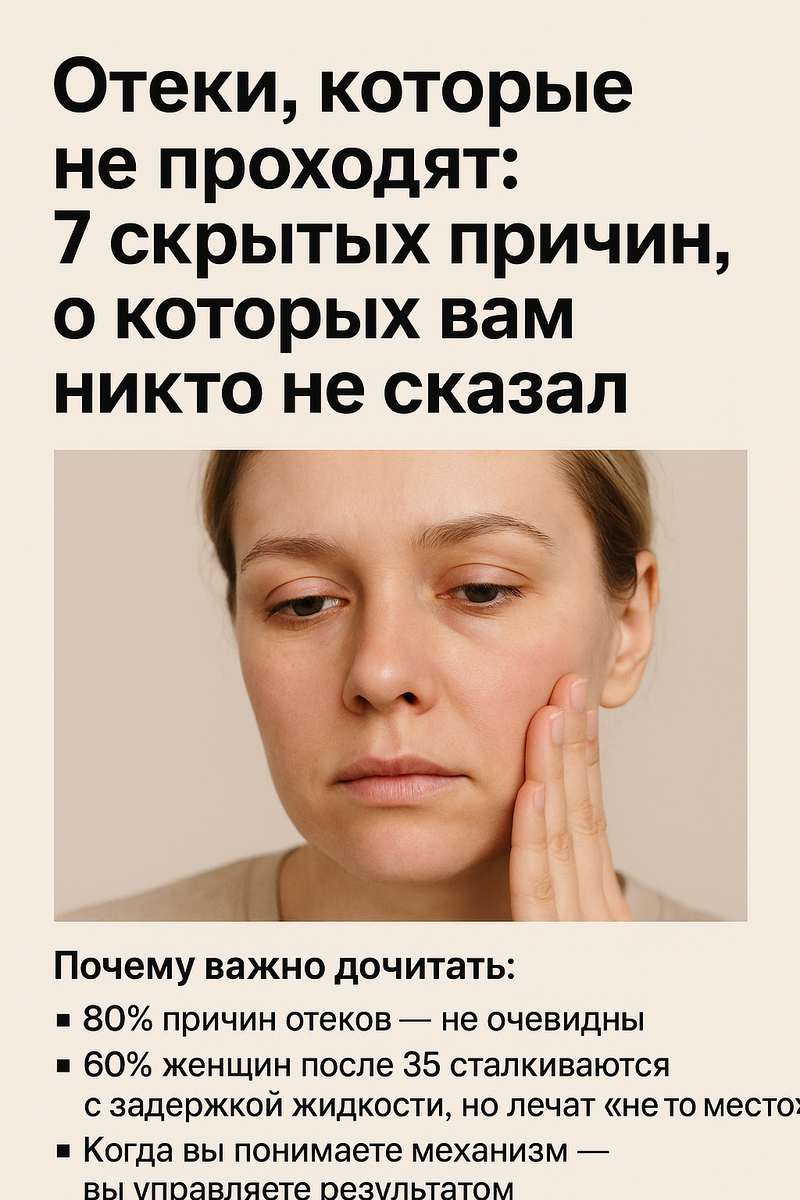 В этой статье разберём 7 самых недооценённых факторов, которые приводят к отёкам. Объясню простыми словами, дам проверенные решения и покажу, в каком случае нужно идти к врачу, а когда достаточно сменить привычки. Почему важно дочитать: Лимфа — наш «канализационный» и очистительный механизм.